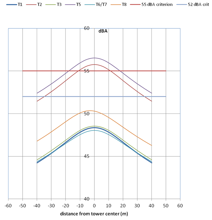 Figure 1 - Audible noise as a function of phase configuration 550kv