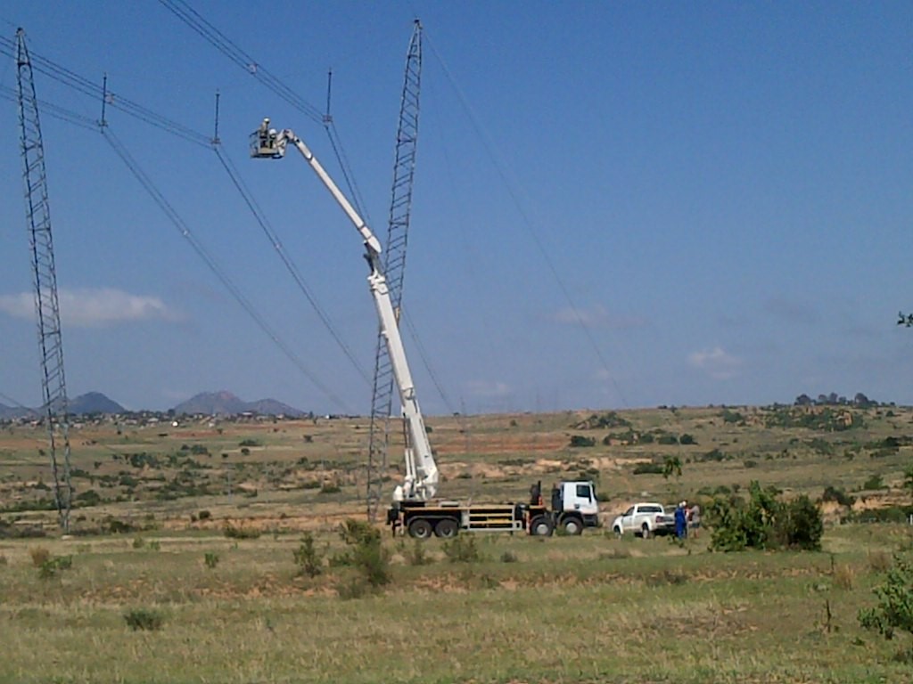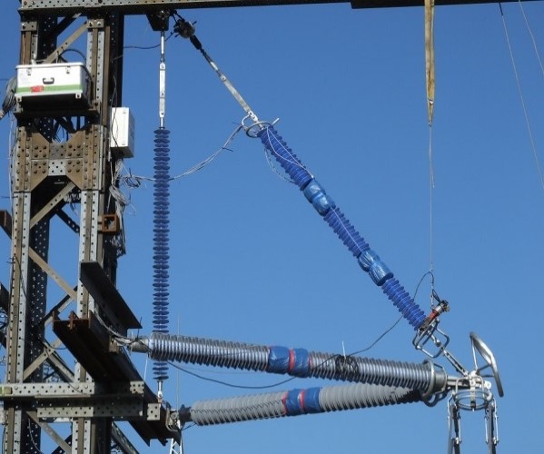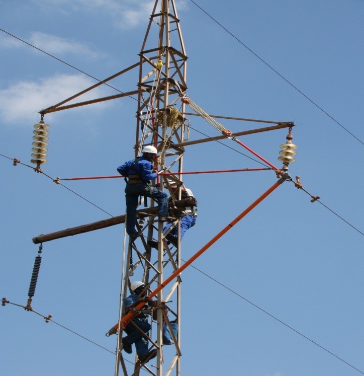 Figure 3 - Live working on cross rope tower