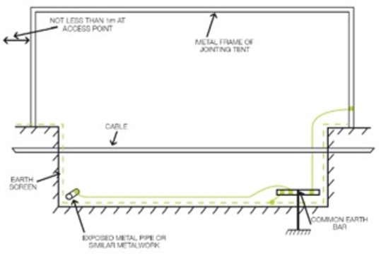 Whenever a cable is left disconnected, the metal sheath and core conductor should be shunted and locally earthed, to prevent standing voltage. It should be noted that only a part of the cable system needs to be exposed to the electric field for the whole cable to be affected.