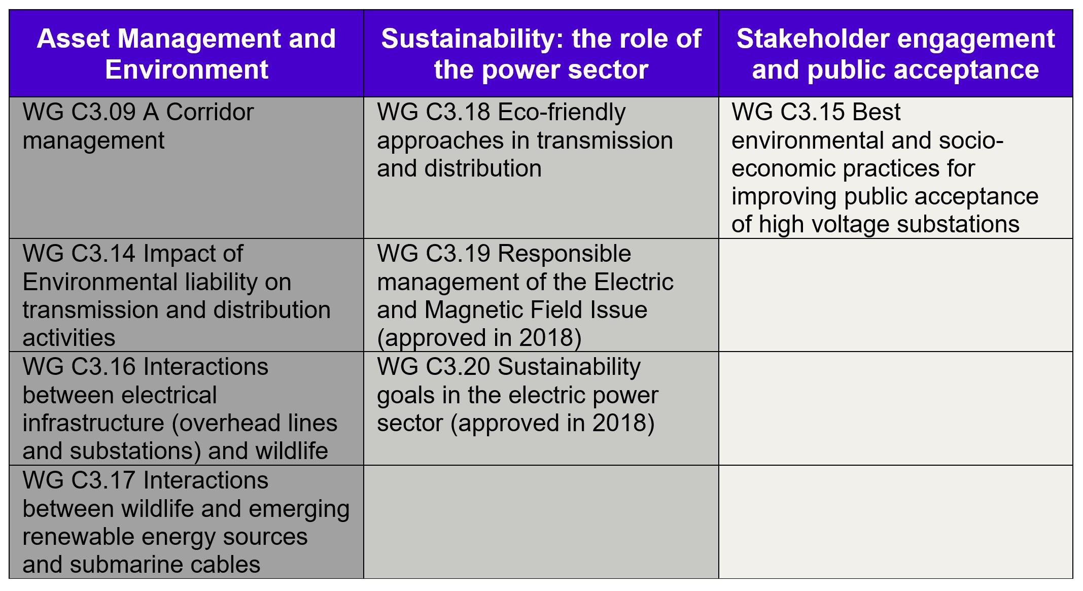 And finally, WG C3.12A : Greenhouse Gas Emissions inventory and report for transmission system operators (Re-start), that is currently in the approval process. The purpose of the WG was to review and recommend harmonized procedures and methods for accounting and reporting GHG emissions that can be used by TSO’s worldwide.