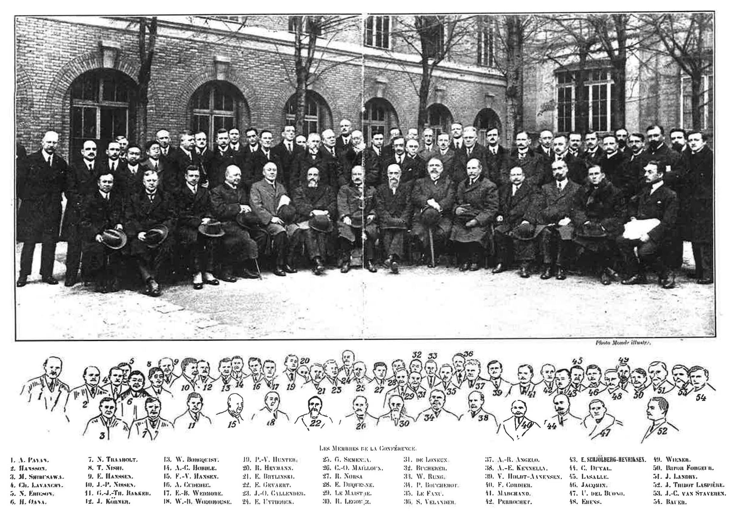 USE of France took charge of organising this first Congress called Conférence Internationale des Grands Réseaux Électriques à Haute Tension - International Conference on Large High Voltage Electric Systems (CIGRE), under the impetus of its President René Legouez and its Secretary General Jean Tribot-Laspière. It is noteworthy that all the illustrious technicians of electric energy from the attending countries were present at the Paris Congress. They represented the “elite” of the world’s electrical engineers, as shown by the historic photograph of the participants posing for posterity.