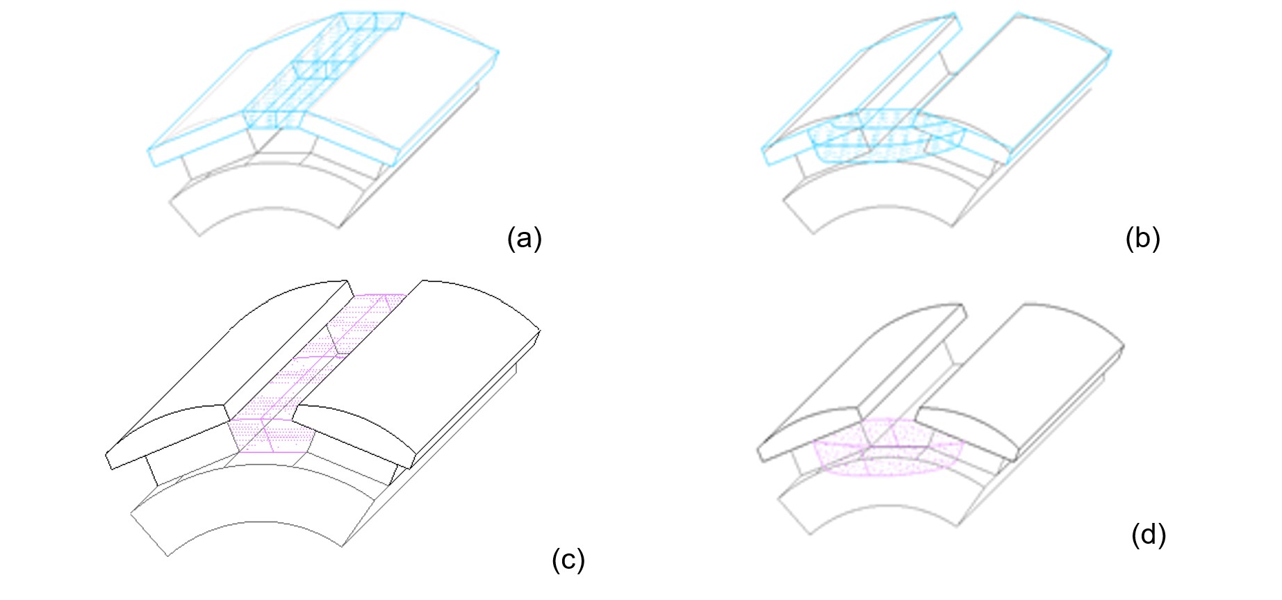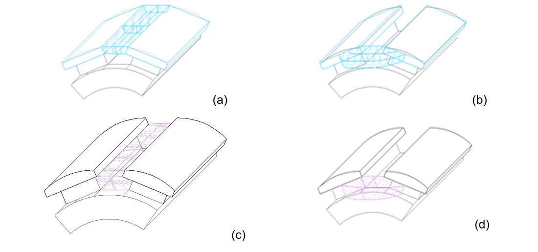Figure 2 - Magnetic tubes of leakage flux (a) and (b) represent ϕσsh the leakage flux-tube in pole shoe; (c) and (d) the leakage flux-tube in pole body.