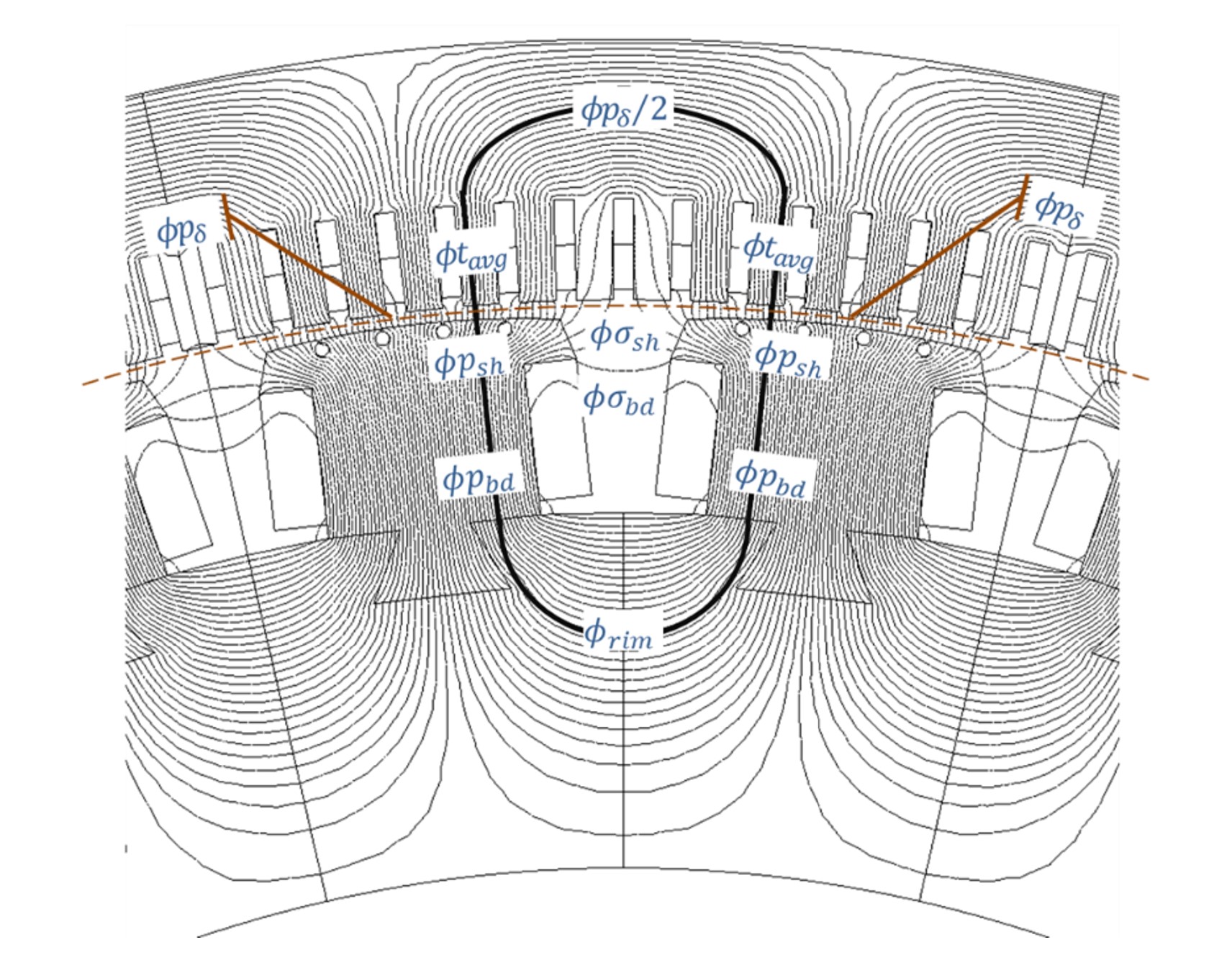 After finding a detailed magnetic circuit theoretical exposition, based on Figure 1 the reader is introduced on the universe of magnetic flux leakage which approach is very hard to find in traditional books or papers. As illustrated Figure 2, from a 1903 paper the concept of “leakage-flux-tubes” was extracted. This is an attempt to confine the dispersed leakage magnetic flux (like ϕσsh and ϕσbd in Figure 1) inside of imaginary tubes where they can be quantified.