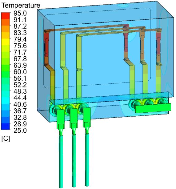 Figure 5 shows one example of the simulated temperature distribution of the MV benchmark case. The maximum temperature occurs on the knife contacts.