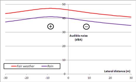 Figure 1 - Typical audible noise profile under an HVDC Line