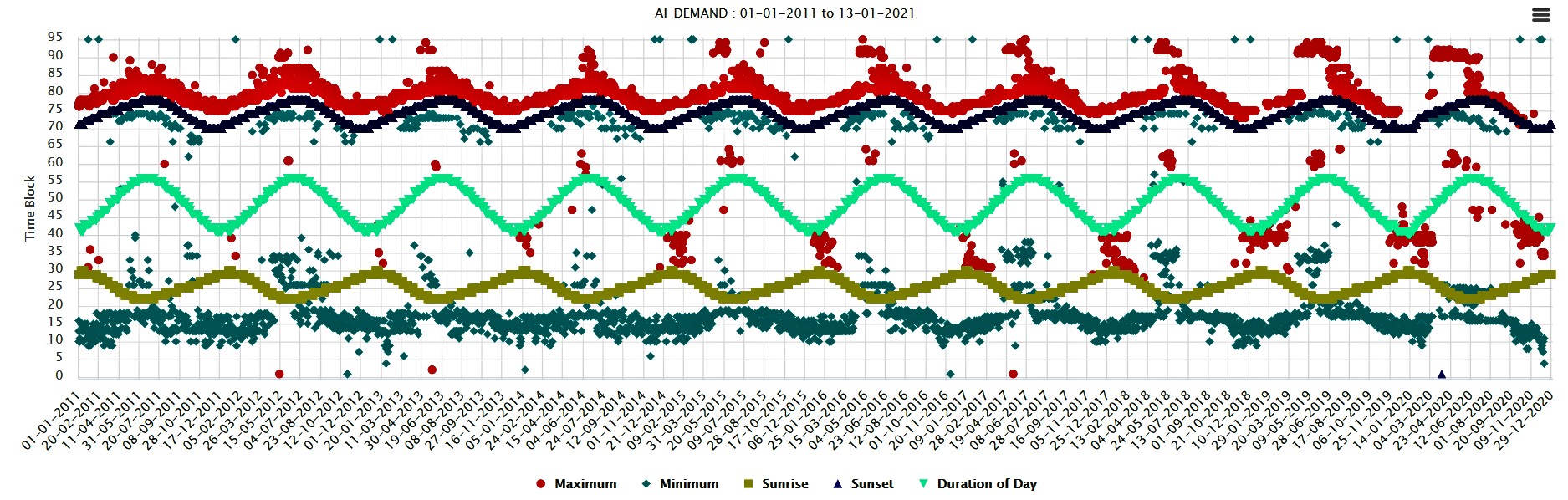 In India, the improving adequacy scenario is leading to a natural load shape. The agricultural load is also shifting to solar hours. The all-India changing demand pattern and time of occurrence of peak/off-peak demand, as depicted in Fig. 6, are necessitating resource flexibility over the years.