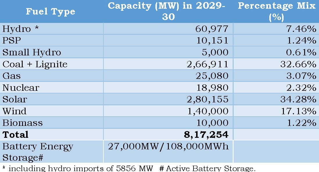 Table 1 - Estimated Generation Mix 2029-30 (Source: CEA)