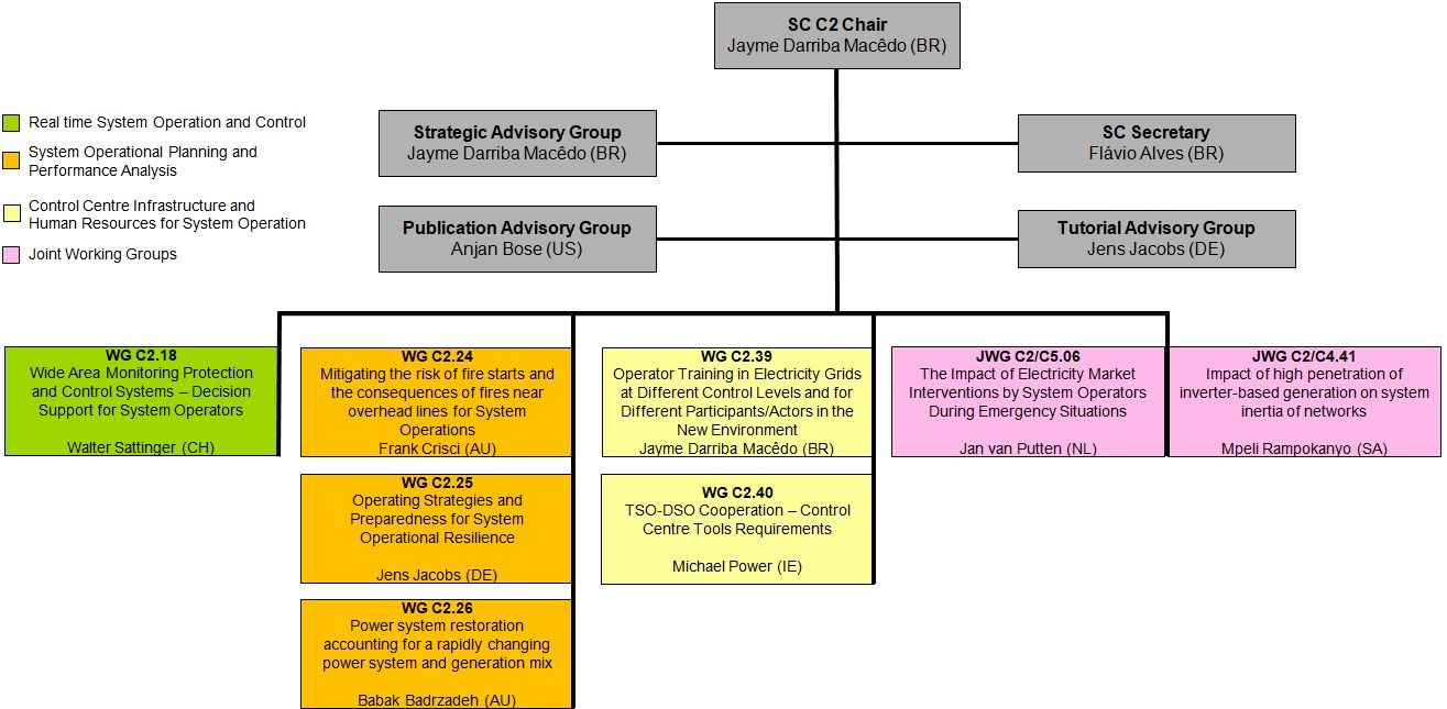 The Strategic Advisory Group, consisting of the SC Chair, Secretary and other SC C2 experts, deals with SC strategy and updates the scope of the Technical Directions. The Publication Advisory Group is responsible for the revision of synopses and papers for CIGRE activities where SC C2 plays a role. The Tutorial Advisory Group (TAG) coordinates the development, planning, quality assurance and delivery of tutorials for conferences, symposia, colloquia and webinars. There are around 175 experts from 35 countries actively involved in SC C2 activities.