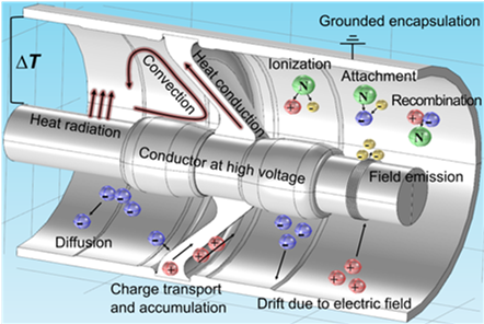 Figure 1 - Physical mechanisms in DC gas-solid insulation systems