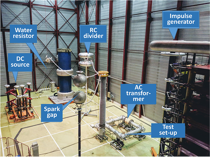 Figure 2 - DC insulation system test: Test set-up, prepared for both DC and superimposed tests