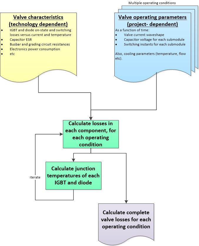 Presently, the losses of VSC valves are determined based on the calculation methods of IEC 62751-1 and -2. The calculation method requires detailed information such as the parameters of semiconductor devices, VSC valve design characteristics and operating modes, which are usually not directly available to the HVDC system purchaser/user, who consequently finds it difficult to evaluate the calculated losses results.