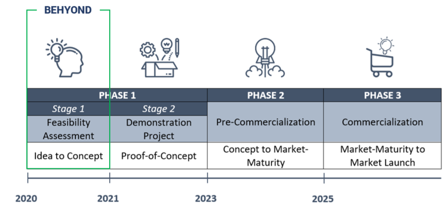 The BEHYOND project focused on Stage 1 of the technology development roadmap and conducted a feasibility study of the offshore hydrogen production facility.