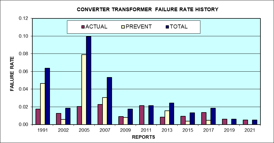 Figure 1 shows the Converter Transformer failure rate history based on the combined data of surveys carried out in the following periods: