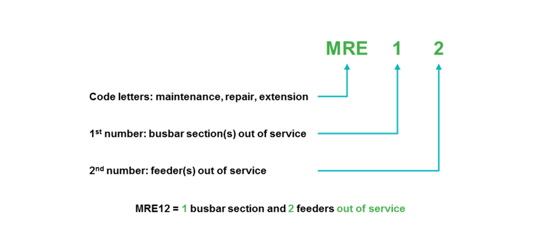 - To handle the complexity of service continuity a so called MRE Code was introduced specific to busbar sections and feeders of the GIS on out of service condition during maintenance, repair, extension or on-site dielectric test;