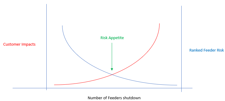 Figure 3 - Risk Appetite – where accumulated Ranked Feeder Risk balances Customer Impacts