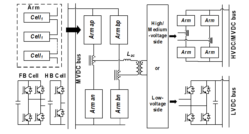Figure 2 - Isolated modular multilevel DC-DC converter consisting of an MMC stage at medium-voltage side connected to an MVDC bus