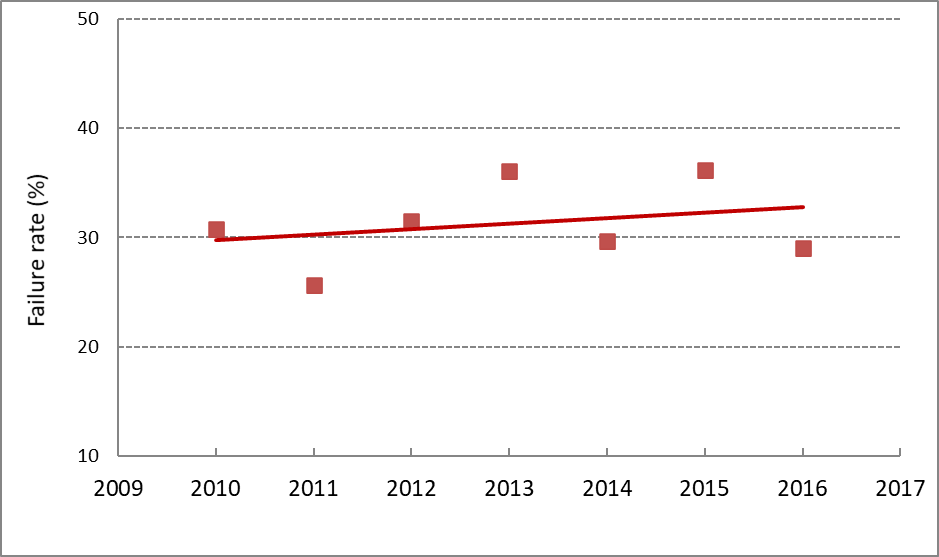 Figure 3 - Test-failure rates of HV circuit breakers 2010 - 2016
