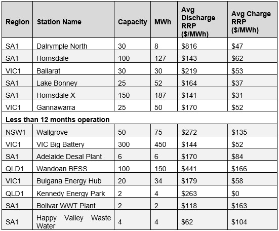 Nearly all of the BESS (once past commissioning) are operating with RRP differentials greater than $100/MWh, with an average of approximately $160/MWh.