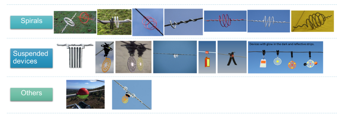 Chapter 4.1 deals with the subject of bird collision with existing infrastructure and shows that it is particularly difficult to quantify these events (as opposed to electrocutions) because a wire strike does not typically result in electrical incidents which can be monitored and counted. Additionally, there are several biases associated with carcass searches, which is a primary indicator used to assess bird mortality. The TB shows the examples of some utilities which have conducted searches to assess bird mortality by collision using automated devices like cameras or radars. Examples are given in the TB showing some companies that have developed a specific analysis to map existing lines sensitive for birds, helping them to decide which lines should be marked with BFDs. As a result, companies have implemented avian policies, including a plan and associated budget for retrofitting necessary OHLs with BFDs. The TB shows the main categories of BFDs used among the members of the Working Group: spirals, suspended devices and spheres. According to studies done by companies and described in the TB, wire marking is effective for decreasing bird collisions with power lines but with strong variations between studies (between 34 and 97 % efficiency), depending on the species, type of BFDs, topography, habitat, power line type, etc.