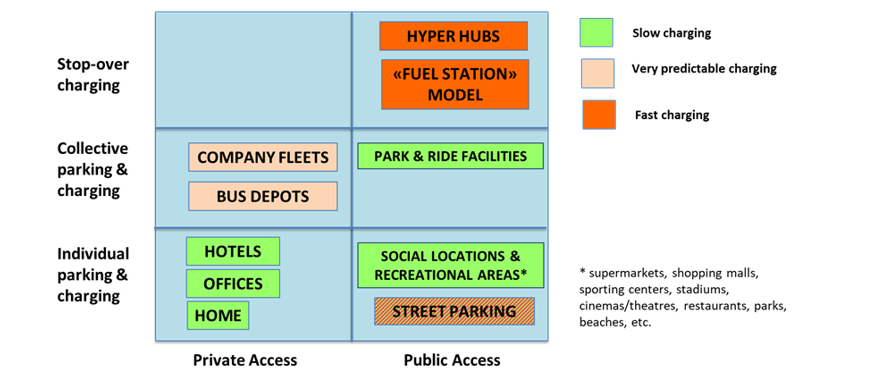Figure 1 - EV charging use cases, structured according to access, parking characteristics and charging time (Source: ENTSO-E)