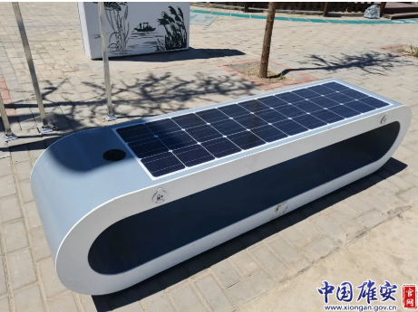In order to improve the ecological environment of Wangjiazhai village and respond to the clean heating policy, the State Grid Xiongan New District power supply company has built a LVDCSUS based green smart microgrid having "1 + 3 + n" mode for the village, i.e. to build “1” all green power demonstration village, to have “3”-layer (village, neighborhood and family) power control system and to install “n” innovative elements, such as photovoltaic (PV) seats which can charge mobile phones (Figure 5), smart street light (Figure 6) and smart rubbish-bins (Figure 7) driven by pure solar energy, piezoelectric footpaths which can generate electricity when walking on it.