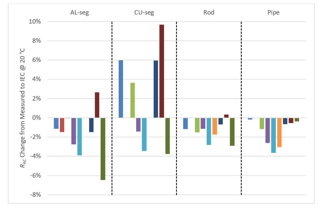 Nevertheless, measurement on well-defined and rotationally symmetric samples (rod + pipe) show less variation. This on the other side reflects the inherent difficulty of AC loss measurement and of the measurement on complex cable conductors. It shows how important it is to follow specific guidelines and recommendations to have comparable results, when performing AC and DC resistance measurements.