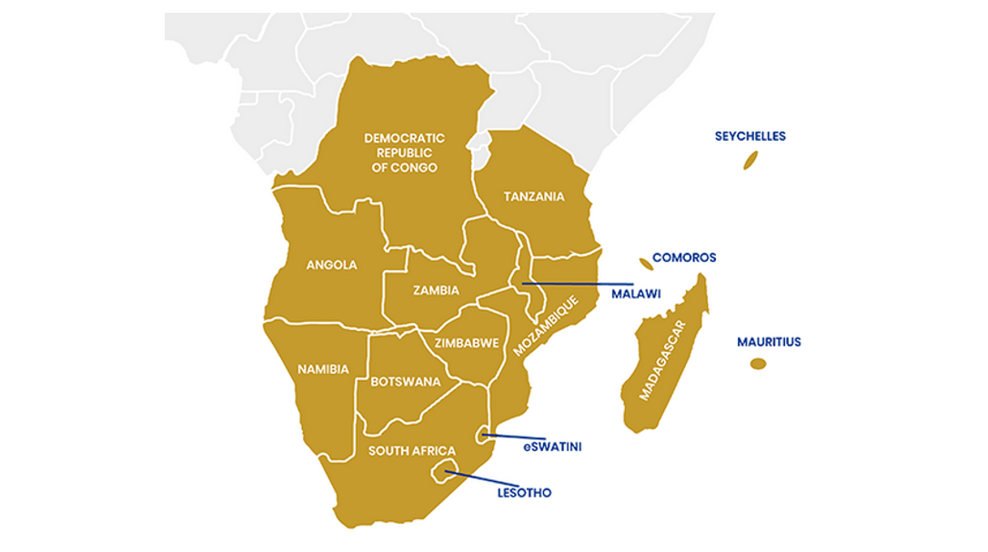 Figure 1 - The countries that form part of the Southern African Development Community (SADC) [5]