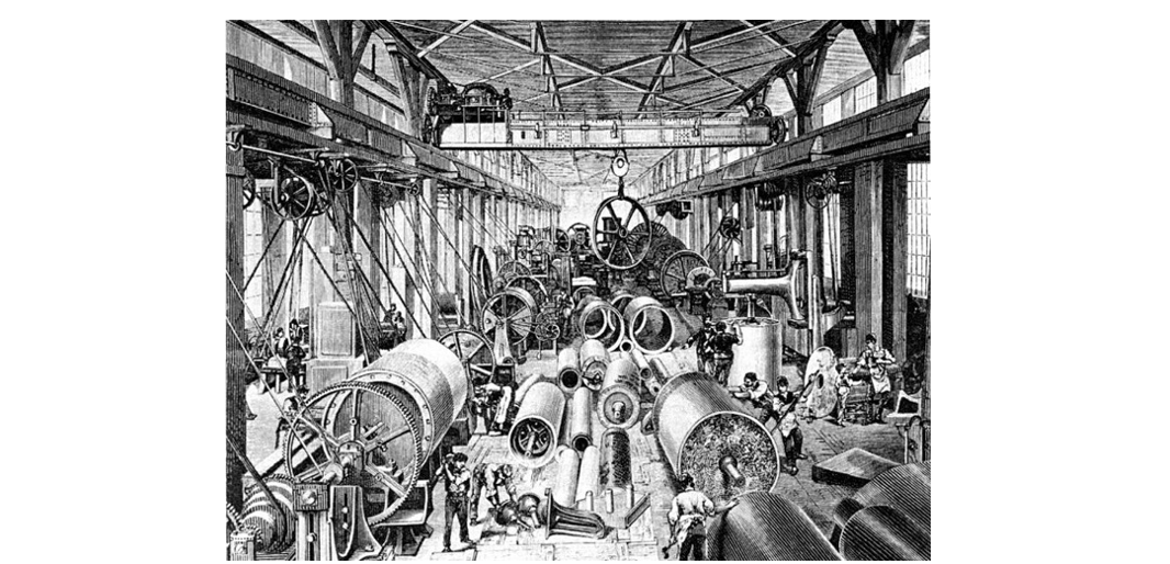 Figure 2 - Factory mechanized by steam engine in 1875 [2]