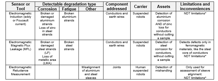 Diagnosic tools are evaluated with infrared thermography, electrical resistance measurement, boroscope, robotic inspection with electromagnetic sensors (Table 2), and radiography (Figure 11).