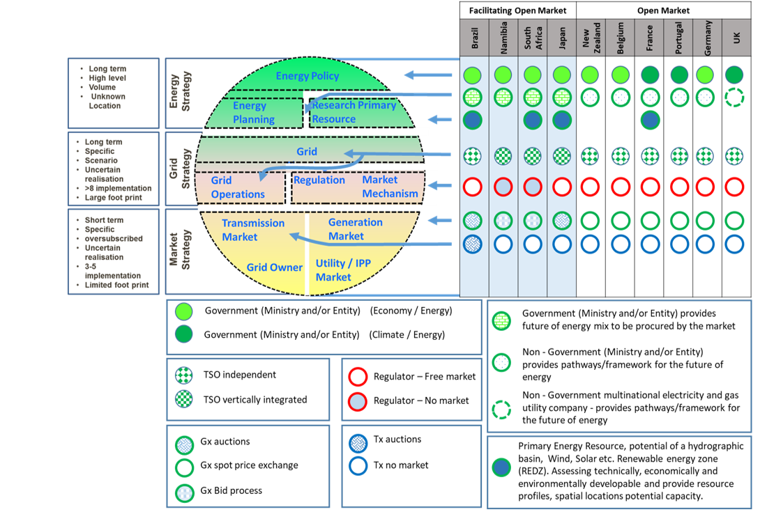 Chapter 5: Summary 1 - ESI comparison framework - In this chapter the simplified ESI model developed in Chapter 2 is used to summarise the feedback received from the participating countries. The simplified ESI model has three sub-areas of comparison, namely Energy Strategy, Grid Strategy, and Market Strategy.