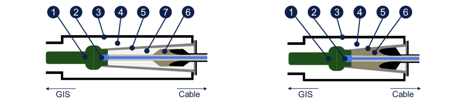 1 | Switchgear connection interface (GIS electrode) | 5 | Separating Insulator |