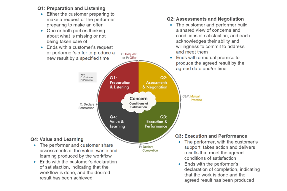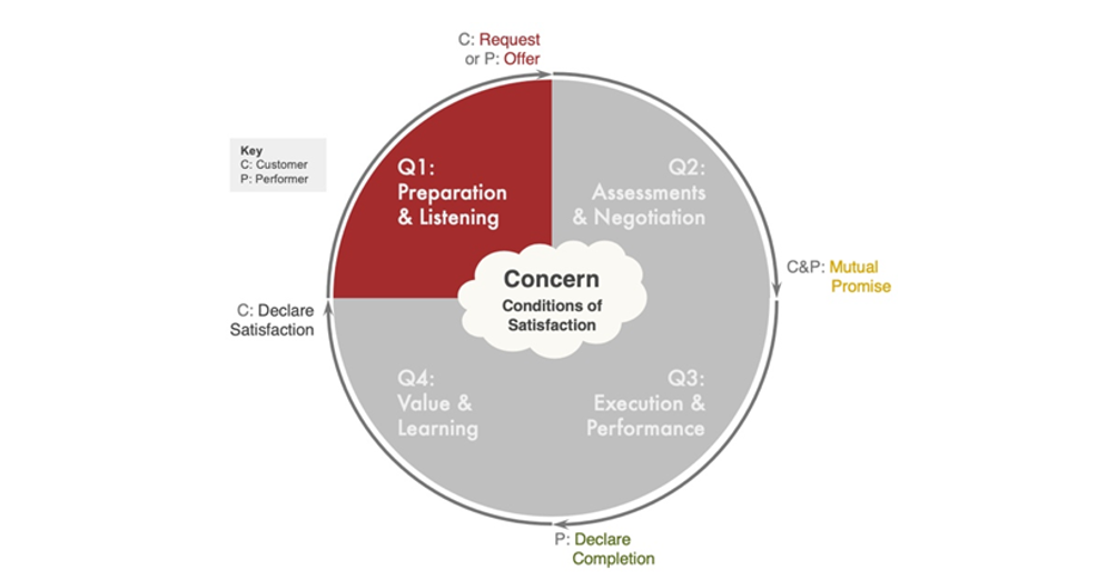 In conclusion, Preparation and Listening is the bedrock of effective workflow. It’s where trust is built, concerns are clarified, and relationships are sized for the task ahead. By mastering Q1, individuals can ensure their workflows start strong, setting the stage for the commitments and actions to come in Quadrant 2, Assessments and Negotiation. Whether you’re scheduling a car service or launching a major project, Q1 is your chance to get it right from the start, turning conversations into coordinated, value-driven results.