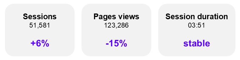 In 2025, the number of unique visitors increased by 2%, reaching 30,192 readers, and sessions grew by 6% to 51,581 visits (comparison vs 2024).