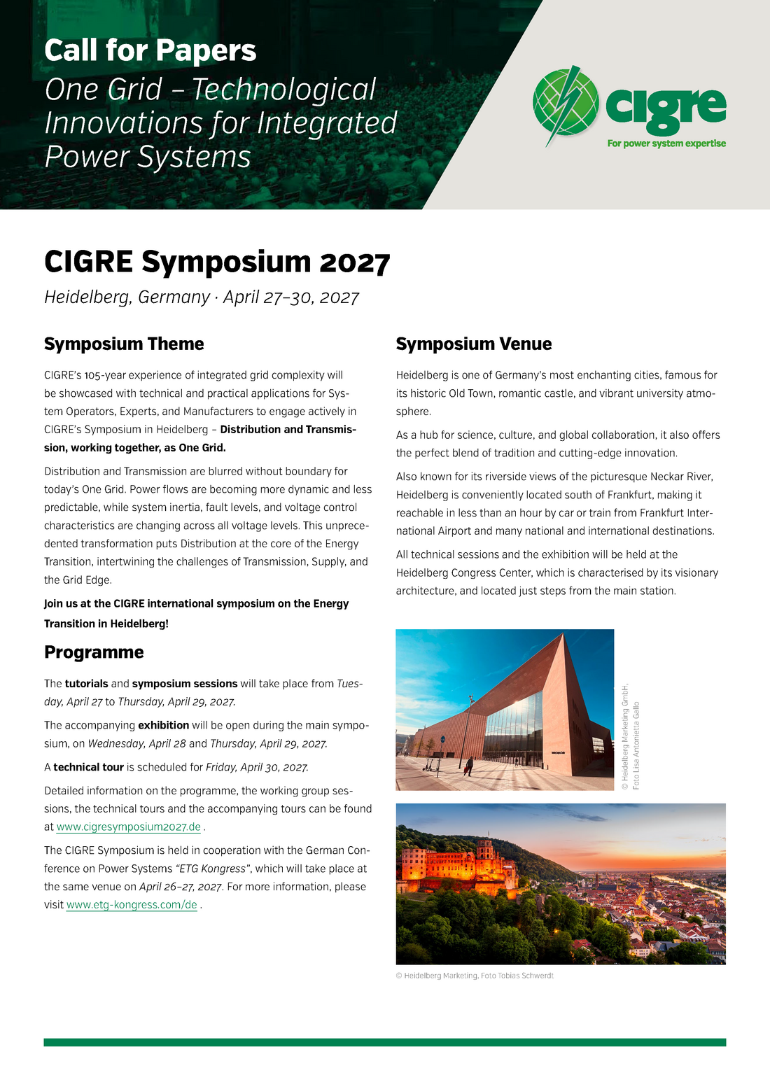 CIGRE International Symposium Heidelberg 2027: Call for Papers