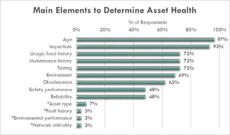 Une question de l'enquête portait sur les éléments que les compagnies d'électricité utilisent pour déterminer la santé des actifs (voir Figure 2).