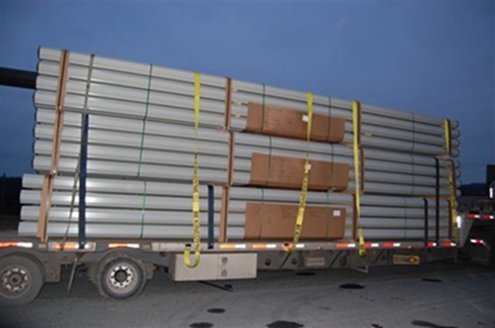 Figure 5 - Un grand nombre de poteaux FRP transportés sur site avec un seul camion