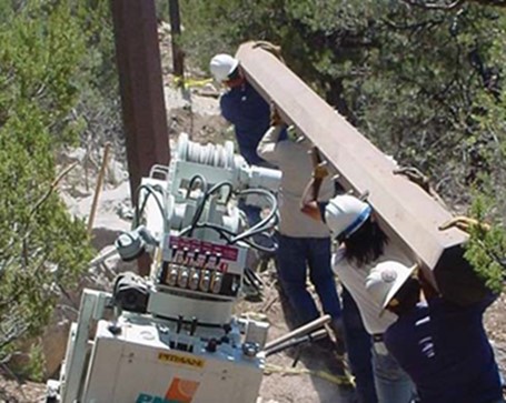 Figure 6 – Poteau FRP porté à l'épaule sur un site d'installation