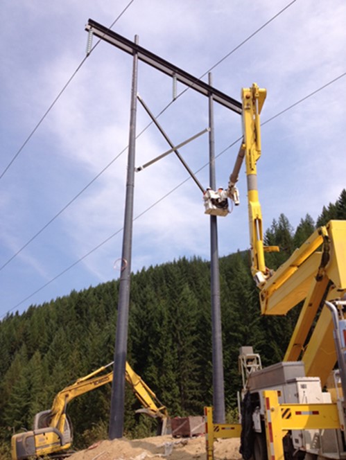 Les structures des lignes de transport en FRP sont beaucoup plus légères que les éléments en bois, acier et béton assurant les mêmes fonctions. Les coûts de transport et d'installation sont réduits, dans la mesure où des moyens plus légers suffisent pour la construction et, qu'avec les moyens utilisés pour les autres matériaux, des quantités plus importantes sont transportées (Figure 5). En outre il est souvent possible de manipuler les poteaux électriques FRP à la main dans les espaces réduits (Figure 6).