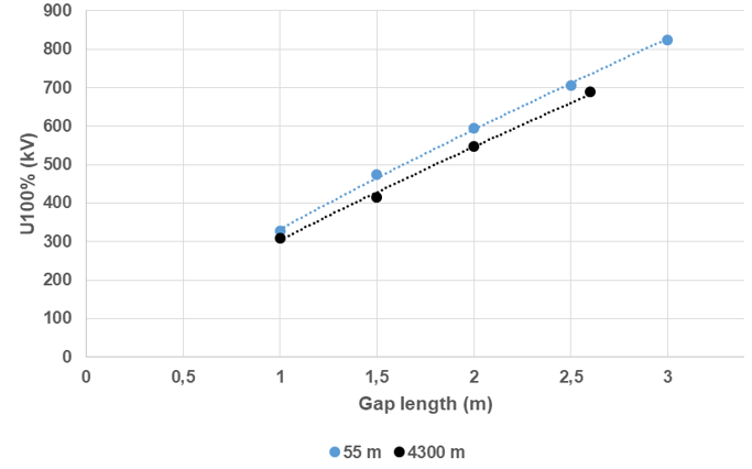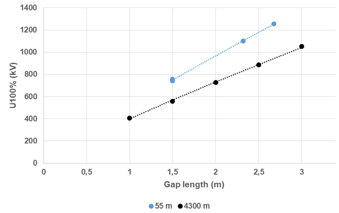 Le Chapitre 5 “Méthodes de correction pour les intervalles longs (densité de l'air) – Essais de claquage et correction d'altitude” présente une analyse approfondie des méthodes de correction appliquées pour les intervalles d'air longs (densité de l'air). On y rapporte des résultats d'essais récents sur des intervalles d'air longs, à des altitudes élevées allant jusqu'à 4200 m, pour des contraintes CA, CC, LI et, SI, et on analyse ces nouveaux résultats en relation avec les méthodes de correction actuelles (Figure 2).