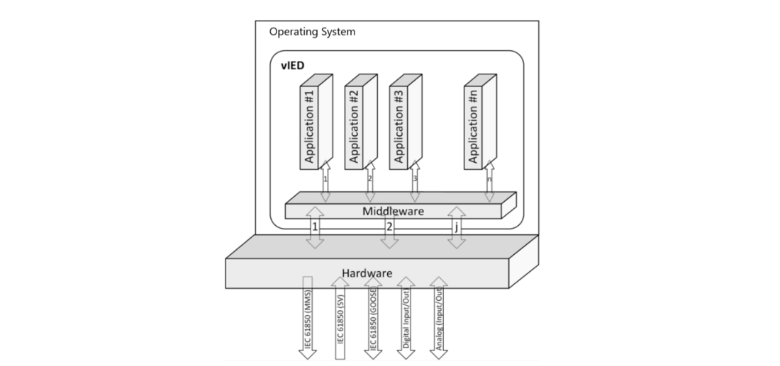 - L'application des concepts IT pour virtualiser les fonctions de protection sous la forme d'IED virtuels dans des serveurs est regardée comme une orientation future prometteuse, qui permettra des avantages tels que la facilité accrue d'intégration et de gestion de la vie utile des progiciels, une cyber sécurité sans discontinuité, la possibilité de jumeau fonctionnel numérique, la possibilité d'exécuter des essais hébergés sur le cloud, entre autres.