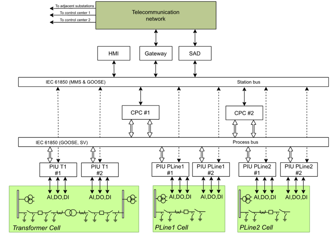 Le Chapitre 7 explique diverses architectures de référence de systèmes du type FIH, allant du poste numérisé avec bus processus, jusqu'au Système Centralisé de Protection et de Contrôle (Figure 2), et les compare en détail. Dix critères de comparaison différents allant du nombre des équipements aux aspects économiques ont été définis, et en regard desquels les architectures de référence ont été classées. Le lecteur aura la possibilité d'utiliser ces critères pour choisir la solution la plus appropriée à un problème donné.