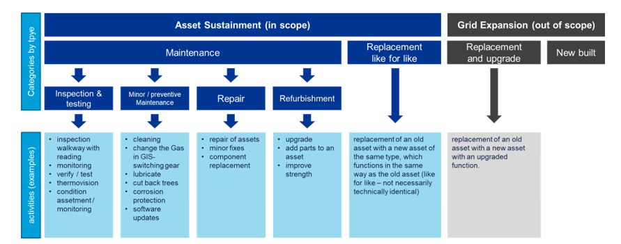 A la fin de ses travaux le GT a jugé nécessaire d'identifier des domaines de décisions de la Gestion de la Performance des Actifs, appelés "Stratégies de Pérennisation des Actifs" couvrant les décisions de maintenance et de remplacement des actifs (Figure 1).